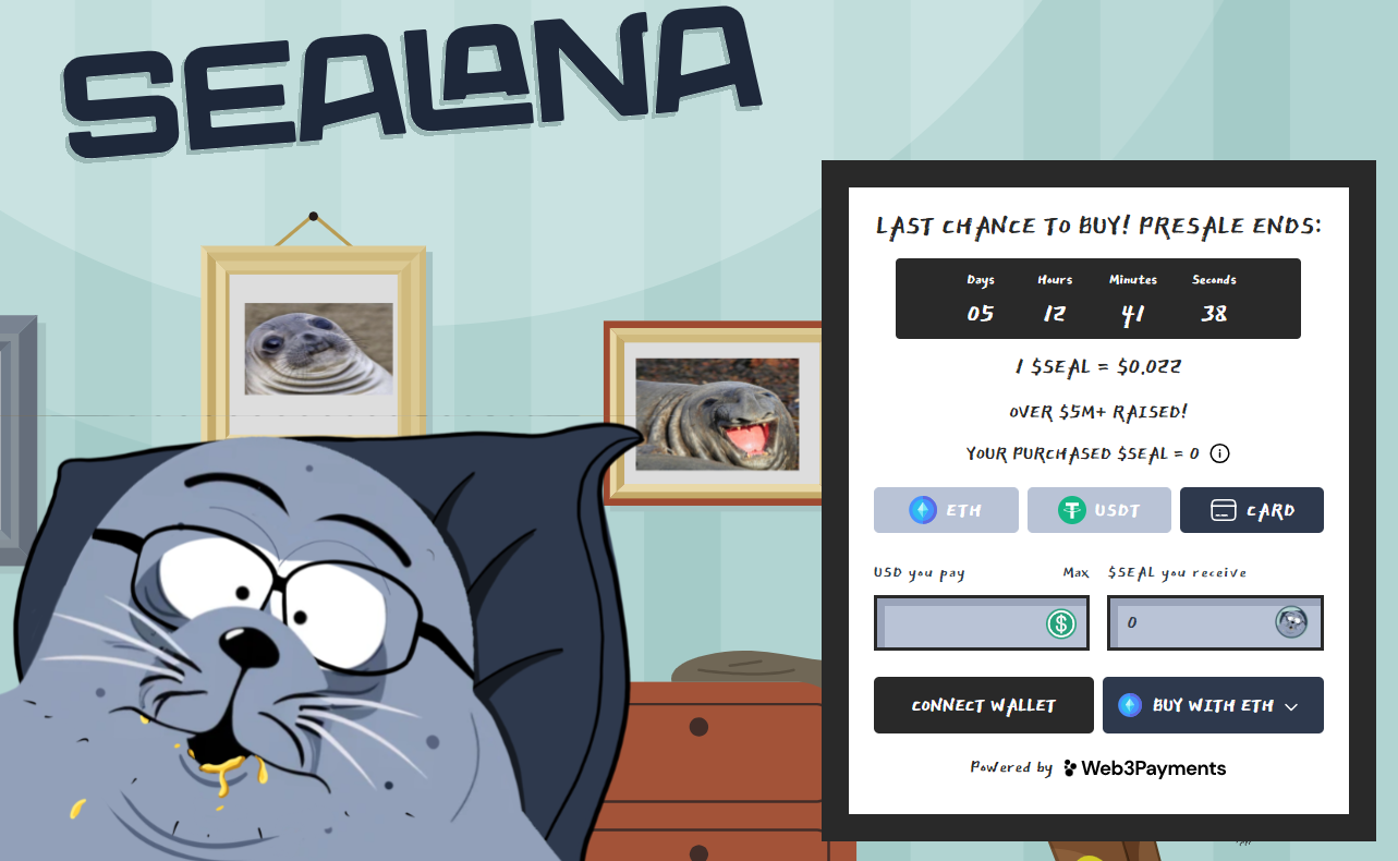 - Použite SOL, ETH alebo vašu platobnú kartu na nákup SEAL tokenov.