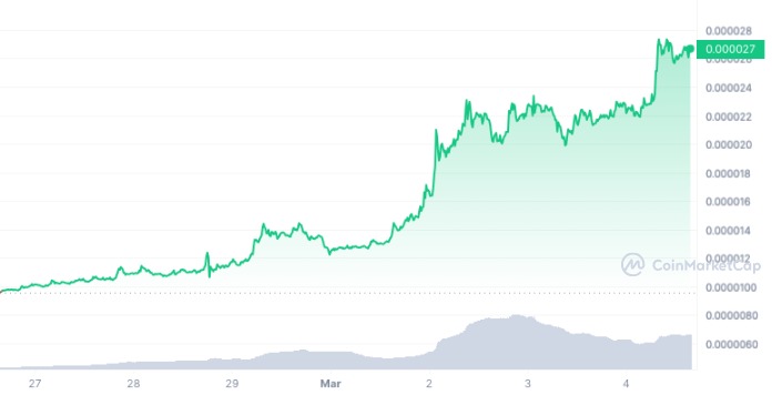 K tokenom, ktoré v poslednom období nadobudli obrovské zisky patrí aj dvojka medzi meme coinami, Shiba Inu. Hoci v porovnaní s tokenmi Pepe alebo dogwifhat vyznie nárast o 180 % za posledný týždeň zanedbateľne, stále ide o výrazné zhodnotenie. Veď Shiba Inu s cenou 0,000026 dolára dosiahla hodnôt, aké nemala za posledné tri roky.