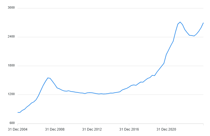 Podľa údajov Národnej banky Slovenska (NBS) sa ceny nehnuteľností v krajine pred 20 rokmi pohybovali na úrovni približne 857 eur za m². Dnes je to okolo 2 700 eur za m², čo predstavuje nárast o 3,15-násobok. Ak by tento rast pokračoval rovnakým tempom aj nasledujúcich 30 rokov, hodnota by sa mohla zvýšiť na 4,725-násobok. Pri nehnuteľnosti, ktorá dnes stojí 200 000 eur, by to znamenalo, že o 30 rokov by mohla mať teoretickú hodnotu až 945 000 eur.