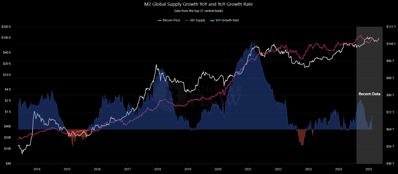 Rast peňažnej zásoby verzus Bitcoin. Zdroj: bitcoincounterflow.com