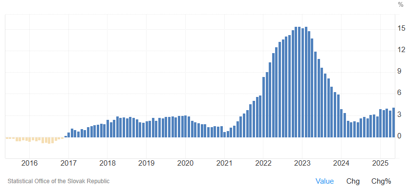 Mesačná inflácia na Slovensku. Zdroj: tradingeconomics.com