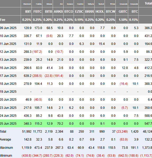 - Bitcoin ETF fondy zaevidovali 547 miliónov dolárov v príleve za jediný deň.
