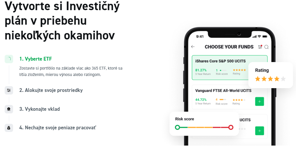 - Prístupnosť: produkt je dostupný pre každého. Investovať totiž môžete už od pár eur. Minimálna výška investície v rámci investičných plánov je 15 eur.