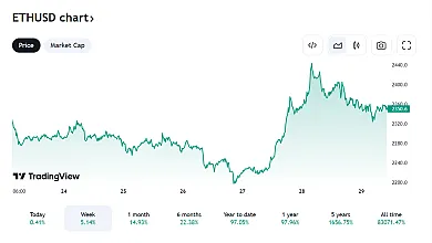 Ethereum v súčasnosti zažíva vlnu optimizmu, pričom predpovede vplyvných osobností z oblasti kryptomien stanovujú vysoké očakávania jeho budúcej hodnoty. Pozoruhodná predpoveď pochádza od zakladateľa spoločnosti BitMex Arthura Hayesa, ktorý predpokladá, že Ethereum dosiahne až 5 000 dolárov. Tento výhľad je podporený neustálym vývojom Etherea a jeho kľúčovou úlohou v sektore decentralizovaných financií (DeFi) a NFT.