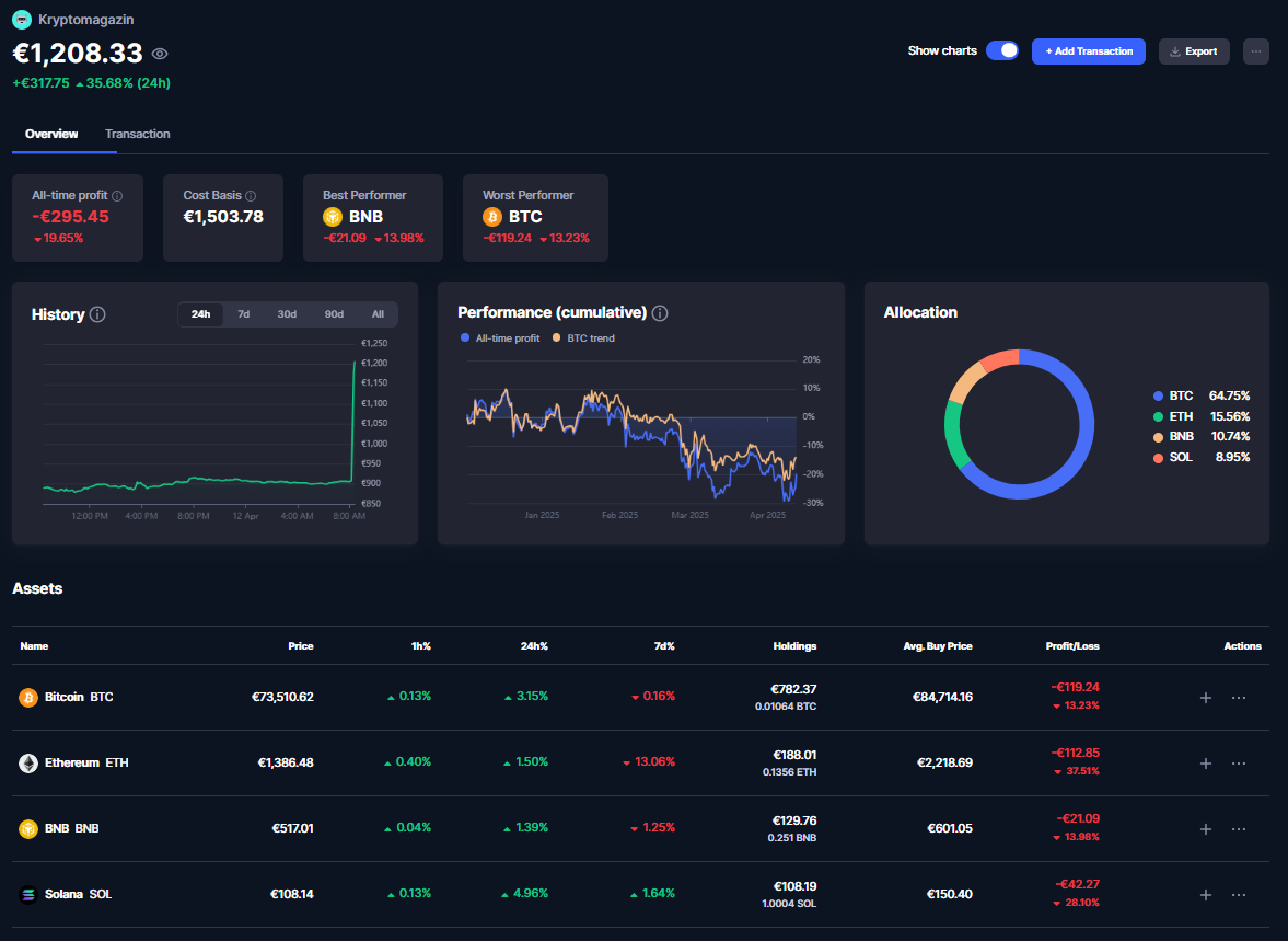 V našom prípade investujeme opäť do najstabilnejších kryptomien (Bitcoin, Ethereum, Binance Coin a Solana). Tento pokles sme využili na ďalšie nákupy: