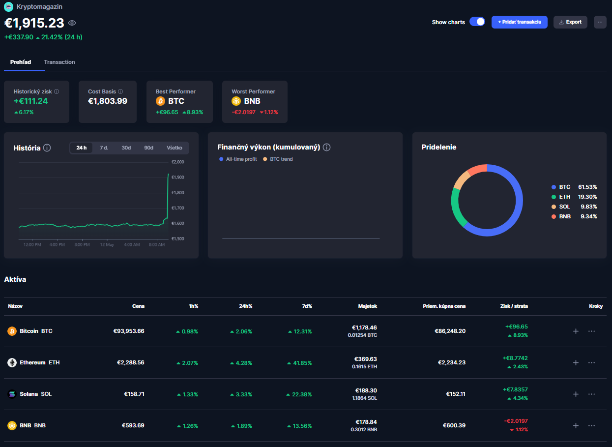 - Porovnnáme výkonnosti Bitcoinu a altcoinov v našom portfóliu.