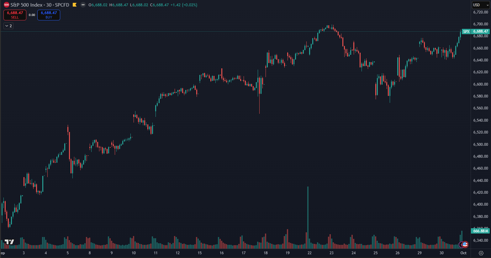 Federálny rezervný systém 17. septembra 2025 znížil sadzbu federálnych fondov o 25 bázických bodov na úroveň 4,00 % až 4,25 %, čo bolo v súlade s očakávaniami trhu. Ide o prvé zníženie od decembra 2024. Americké akcie reagovali len mierne, pretože očakávania už boli v cenách zahrnuté, no napriek tomu to podporilo dlhodobý vzostup na nové maximá.