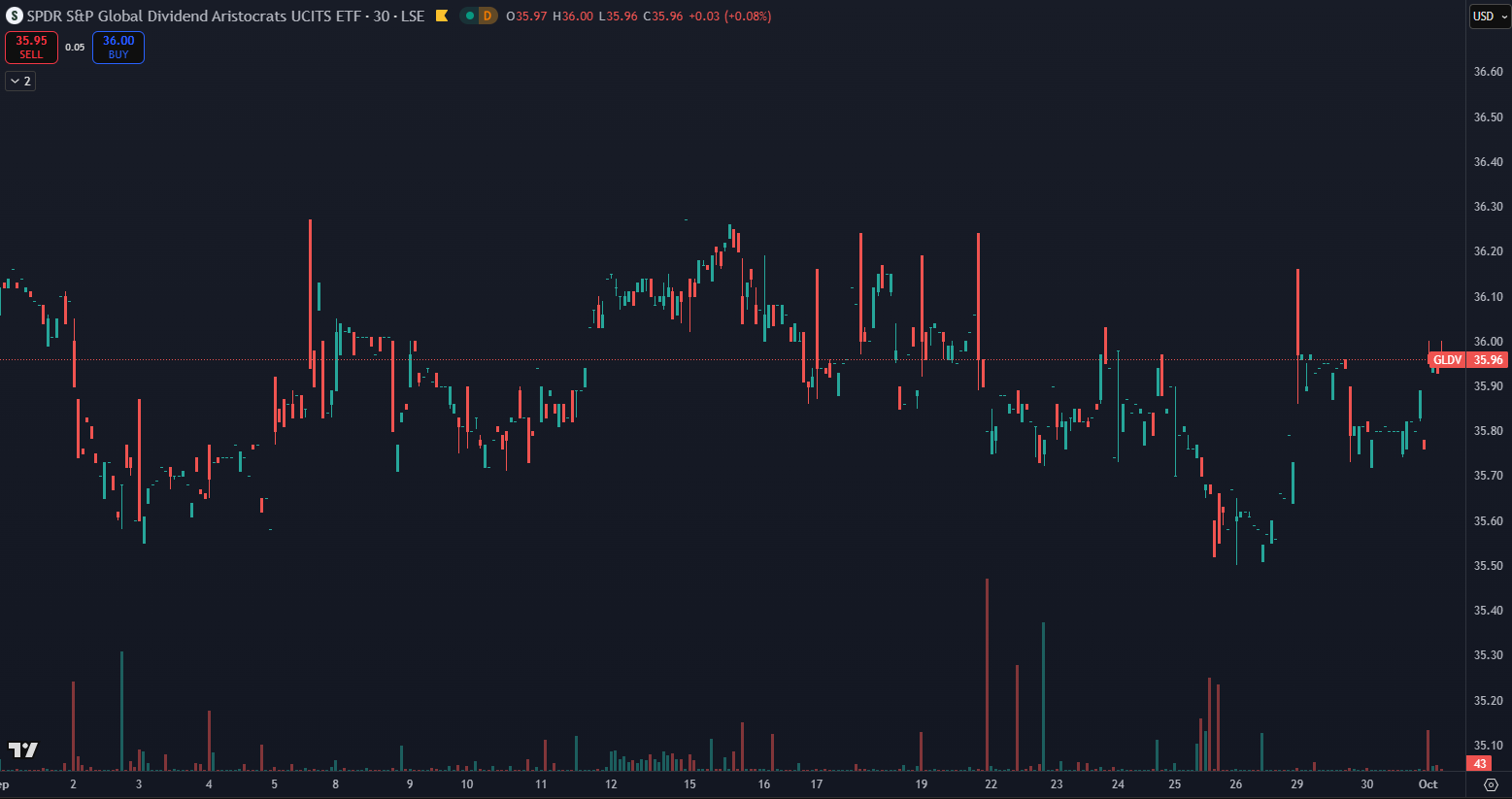 ETF SPDR S&P Global Dividend Aristocrats UCITS za posledný mesiac stagnoval, pretože jeho zloženie obsahuje stabilné dividendové akcie, ktoré nereagujú výrazne na krátkodobé trhové pohyby. Navyše rast globálnych úrokových sadzieb a mierna volatilita na akciových trhoch obmedzili dynamiku jeho cien, čo viedlo k minimálnym zmenám hodnoty.
