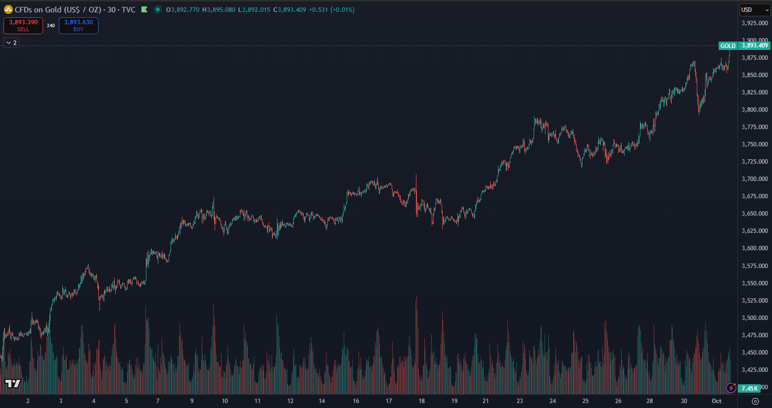 Zlato zaznamenalo za posledný mesiac najvýraznejší medzimesačný rast v rámci nášho investičného seriálu, s rekordným zhodnotením +13,10 %. To zvýšilo hodnotu nášho portfólia na historický zisk prevyšujúci 270 €. Hlavným motorom tohto rastu sú: