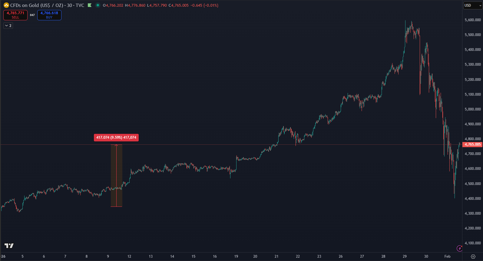 Zlato dosiahlo historický vrchol na cene 5 595 dolárov za uncu, čo predstavovalo významný medzimesačný rast. Napriek tomu 29. januára zaznamenalo prudký pokles takmer o 10 % za jediný deň, čím sa korigovalo predchádzajúce rastové tempo. Aktuálne sa cena snaží zotaviť, no aj napriek dramatickému výkyvu medzimesačne stále predstavuje slušný zisk pre investície do drahých kovov.