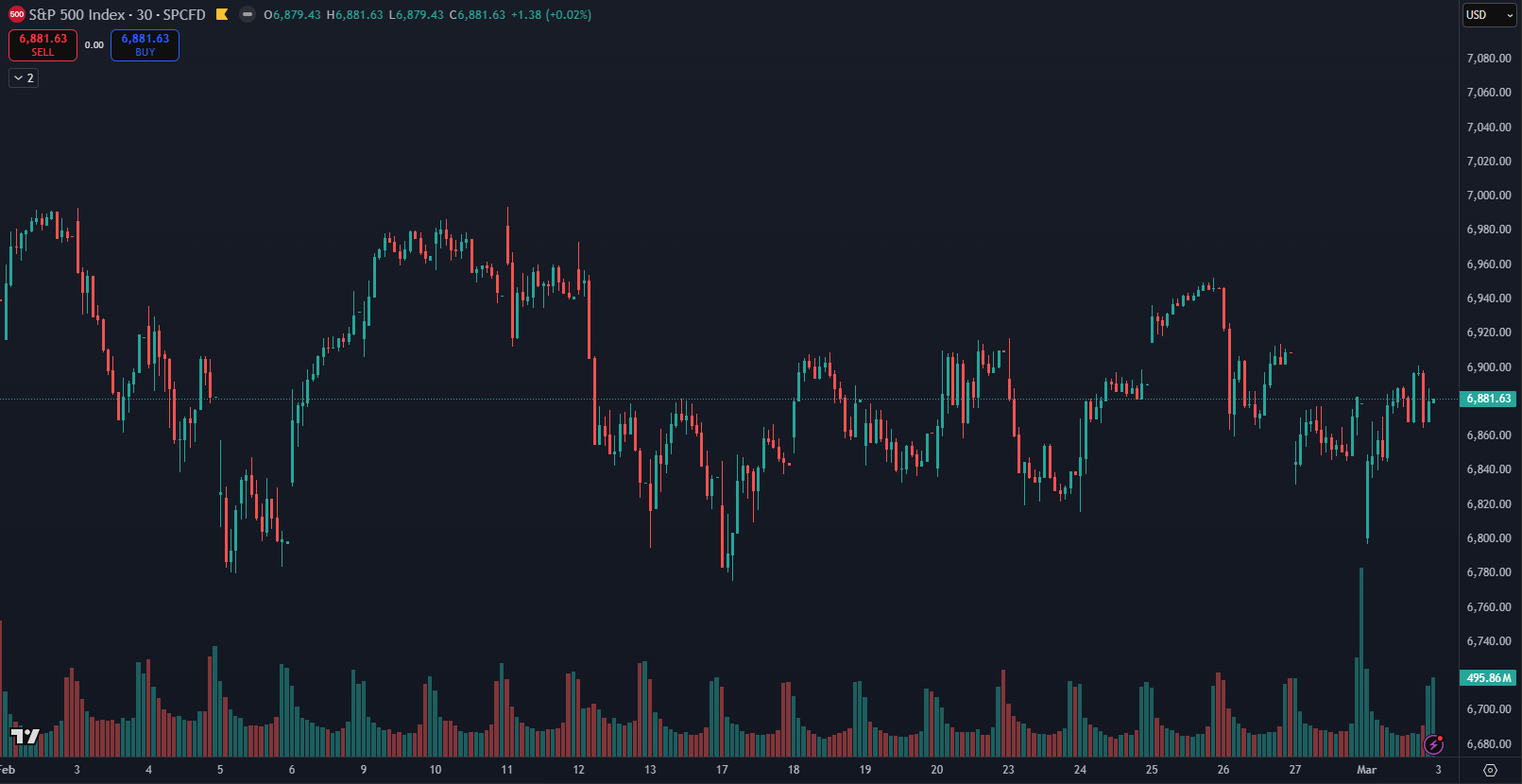 Americký akciový index S&P 500 počas celého februára pokračoval vo vyrovnanom obchodovaní, prakticky sa nehýbal smerom nahor ani nadol. Medzimesačne to predstavuje len minimálnu stratu približne -0,50 %, čo svedčí o stabilite trhu aj napriek rastúcemu geopolitickému napätiu vo svete. Investori dokázali absorbovať negatívne správy z Blízkeho východu a iných konfliktov, a akciový trh tak preukázal odolnosť voči externým šokom, čím posilnil dôveru dlhodobých investorov.