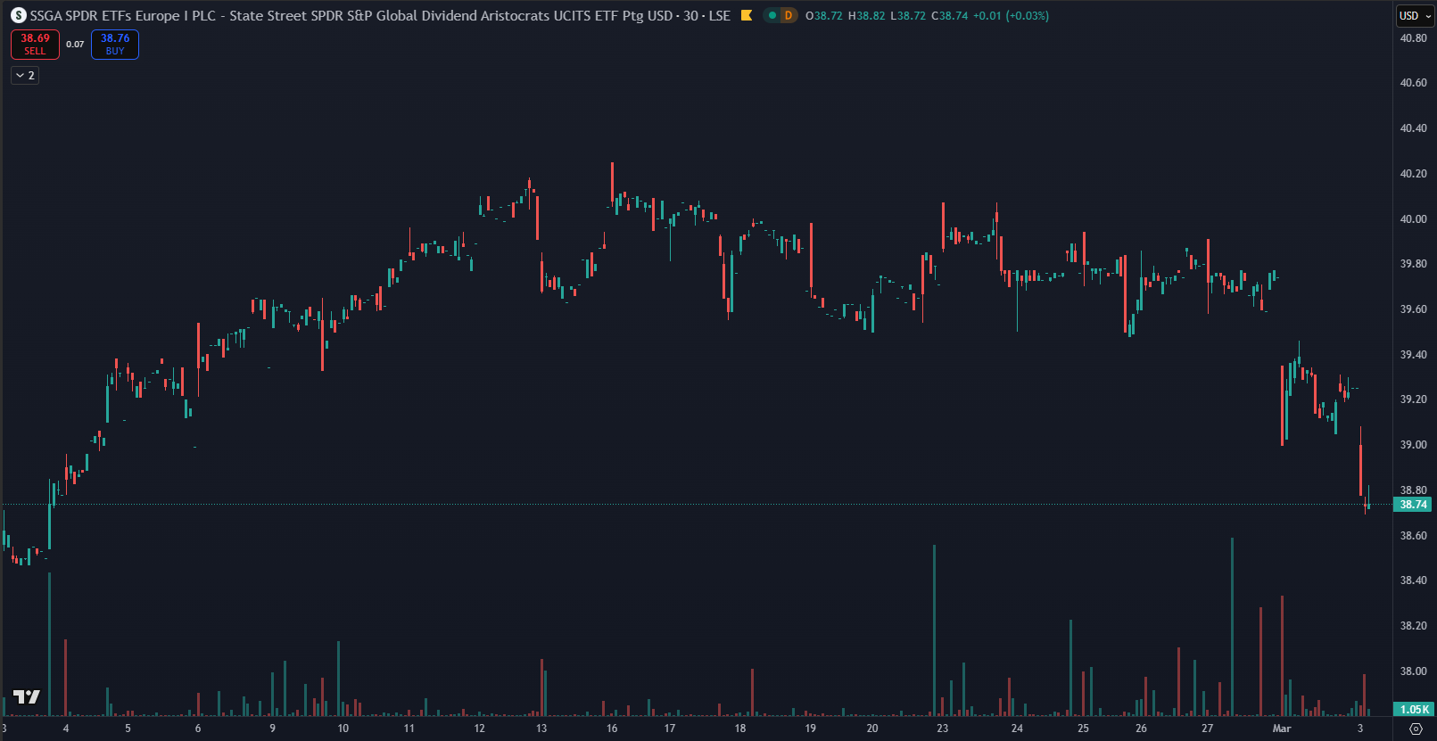 - ETF SPDR S&P Global Dividend Aristocrats UCITS – nárast o +0,40 % = 1 570,71 €