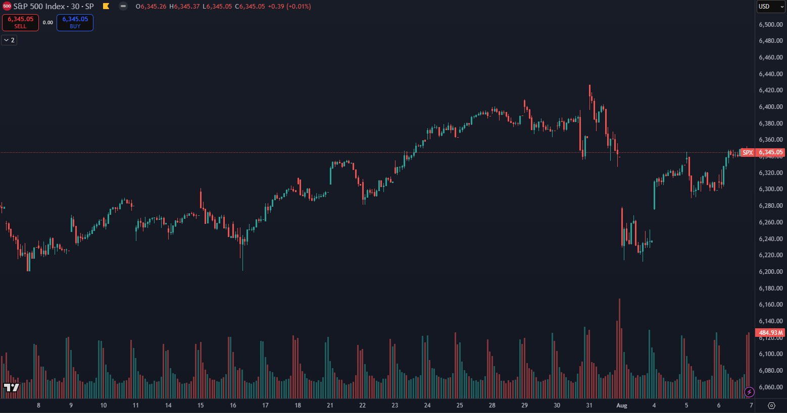 Akciový index S&P 500 v priebehu mesiaca stúpol o 1,40 %, pričom rast pretrvával až do 31. júla, keď sa vytvorilo historické maximum na úrovni 6 404 bodov. Nasledujúci deň však priniesol prudký pokles o 3,40 % v dôsledku nečakanej aktualizácie ciel Donalda Trumpa, čo výrazne ovplyvnilo náladu investorov a spustilo krátkodobý výpredaj na americkom trhu.