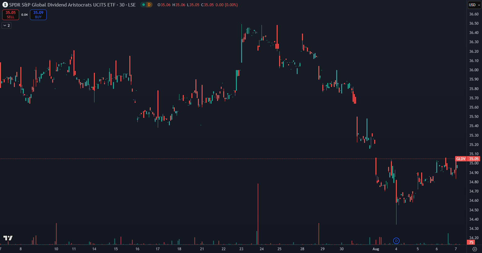 - ETF SPDR S&P Global Dividend Aristocrats UCITS – pokles o -2,86 % = 763,23 €