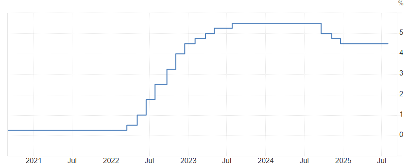 - Menová politika FED-u: Fed ponechal úrokové sadzby nezmenené na úrovni 4,25 % – 4,50 % už piatykrát za sebou, no dvaja guvernéri hlasovali za zníženie, čo je prvý takýto dvojitý nesúhlas od roku 1993. Centrálna banka upozornila na mierne spomalenie ekonomickej aktivity v prvej polovici roka, pričom nezamestnanosť ostáva nízka a inflácia zvýšená. Fed zopakoval, že ďalšie rozhodnutia budú závisieť od nových údajov, rizík a vývoja, pričom pretrváva neistota najmä pre obchodné napätie.