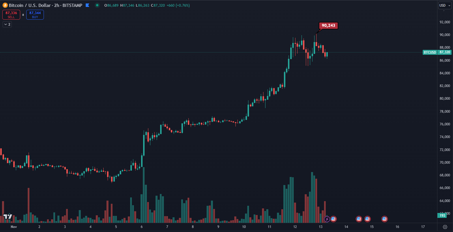 Najväčšia kryptomena zažíva mimoriadne úspešné obdobie, ktoré nemá v posledných rokoch obdoby. Cena Bitcoinu vystrelila na centralizovaných burzách nad 90 000 dolárov. Ide o jeden z najvýraznejších denných nárastov od roku 2021, ktorý prekvapil aj skúsených analytikov na kryptomenovom trhu.