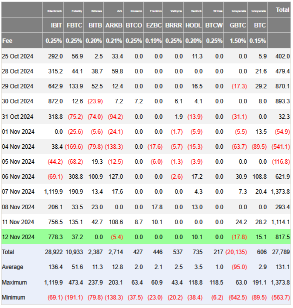 Dôležitým ukazovateľom sily trhu je aj záujem zo strany veľkých hráčov, ktorý v posledných mesiacoch dramaticky vzrástol. Dvanásť spotových bitcoinových ETF fondov zaznamenalo v priebehu jediného dňa obchody v celkovej hodnote 7,14 miliardy dolárov, čo predstavuje významný míľnik v adopcii kryptomien, ukazujú údaje Farside.