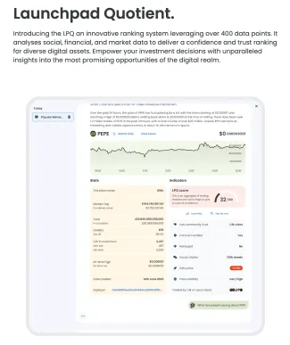 Pokročilá technológia založená na umelej inteligencii Launchpad XYZ prináša revolúciu v oblasti investovania do kryptomien. Základom samotnej platformy je mechanizmus umelej inteligencie Launchpad Quotient (LPQ), ktorý dokáže vytvárať prispôsobené investičné stratégie analýzou viac ako 400 rôznych zdrojov dát.