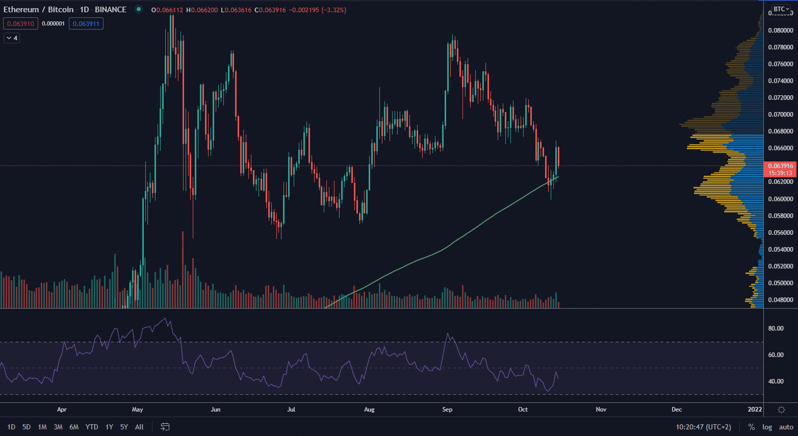 Z technického hľadiska nasledujúci graf ukazuje ETH/BTC, ktorý stúpa z 200-dňového kĺzavého priemeru prvýkrát od apríla. V minulosti to predchádzalo obdobiu silných býčích výkonov. Ethereum teda narazilo na dlhodobý support voči Bitcoinu a zdá sa, že ak nastane po bitcoinovej sezóne altcoinová, tak začne vo výkonnosti Bitcoin prekonávať.