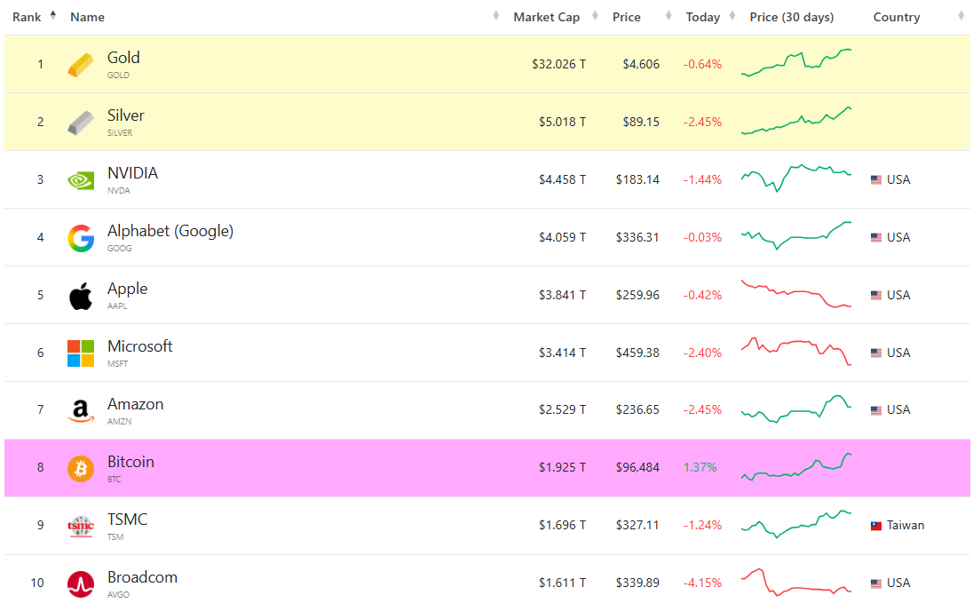 Striebro sa obchoduje na historickom maxime, čo dokazuje jeho silnú pozíciu na globálnom trhu. Kapitalizácia kovu dosiahla odhadovanú hodnotu 5,018 bilióna dolárov, čo ho posunulo pred technologických gigantov ako Nvidia (4,458 bilióna), Alphabet (4,059 bilióna) či Apple (3,841 bilióna), ukazuje rebríček CompaniesMarketCap. Tento nárast ukazuje, že kapitál sa dokáže presúvať aj mimo tradičných akciových lídrov a že striebro sa stalo relevantnou investičnou alternatívou pre investorov hľadajúcich stabilitu a rast.