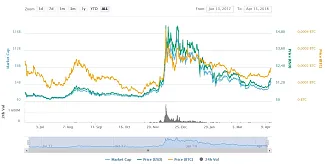Najväčší objem obchodovania zaznamenáva Bitfinex, a to až 33,85 %. Za Bitfinexom nasleduje zmenáreň Binance s objemom 31 %. Celkový objem obchodu stúpol za posledných 24 hodín zo 61 miliónov dolárov na 111 miliónov dolárov. Momentálne sa nachádza na 9. mieste celkového marketu so 4,5 miliardami dolárov. All time high sme mohli vidieť 6.12.2017, a to 6,37 dolárov (43000 satoshis).