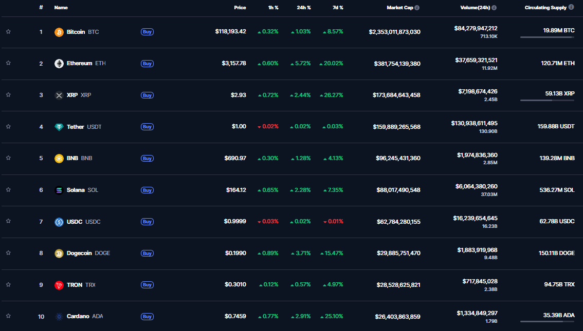 Vždy uprednostnite najväčšie kryptomeny. Zdroj: coinmarketcap.com