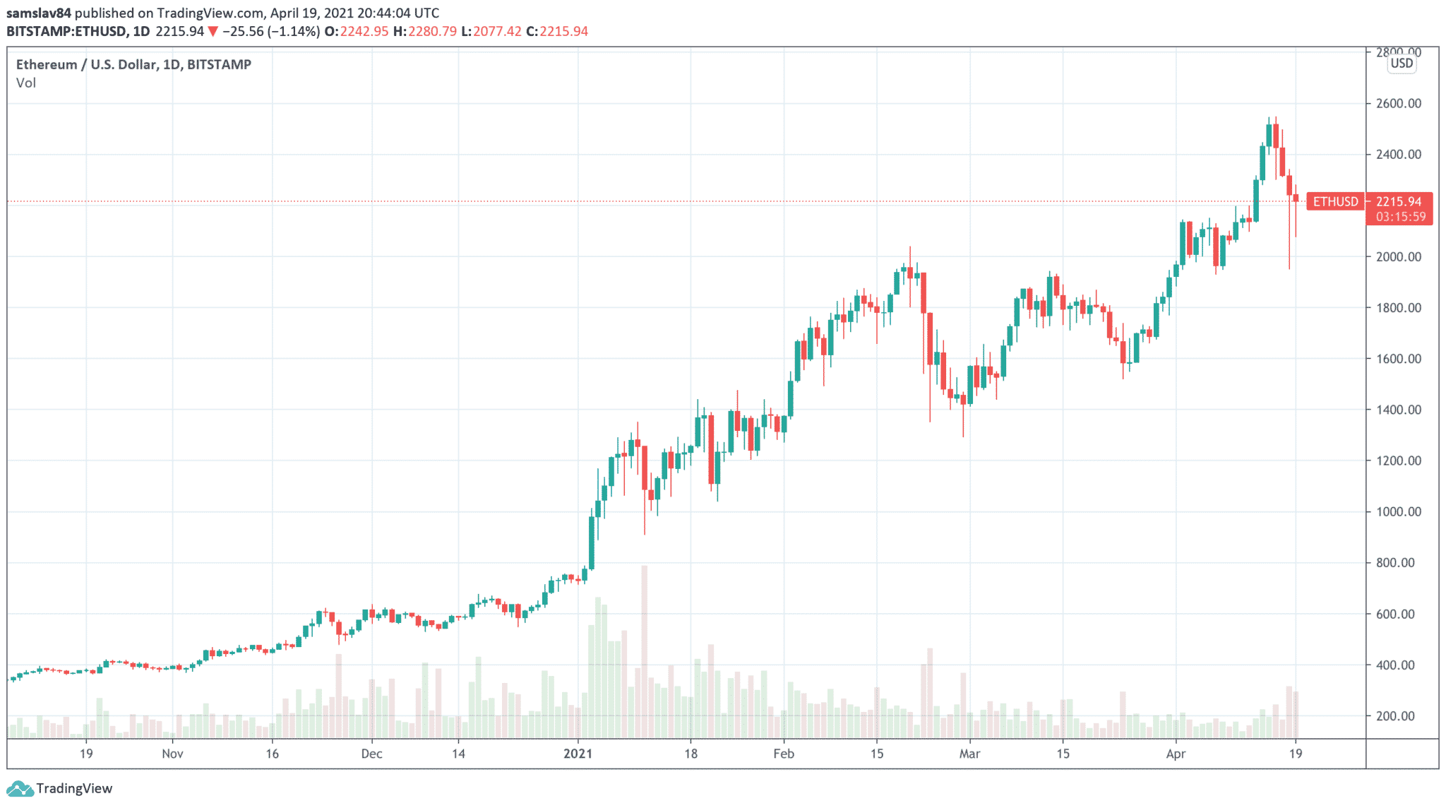 Druhá najväčšia kryptomen, Ethereum, má za sebou silné dni a včera (piatok) dokonca prekonalo cenu 2500 dolárov. Aktuálne ATH je na hladine 2550 USD. Za posledných päť dní sme zaznamenali rast o takmer päťsto dolárov.