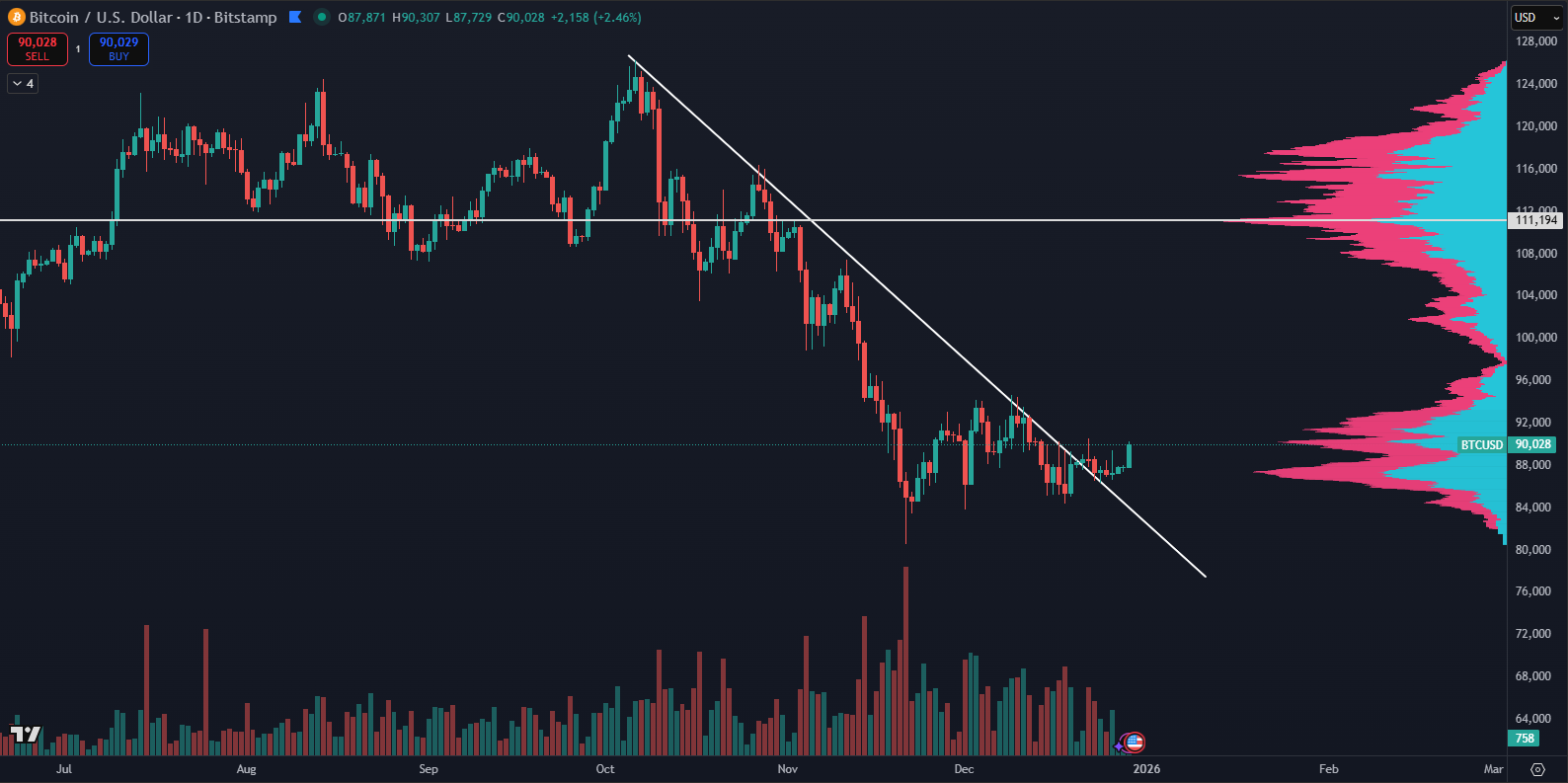 Bitcoin opäť prekonal 90 000 dolárov. Zdroj: tradingview.com