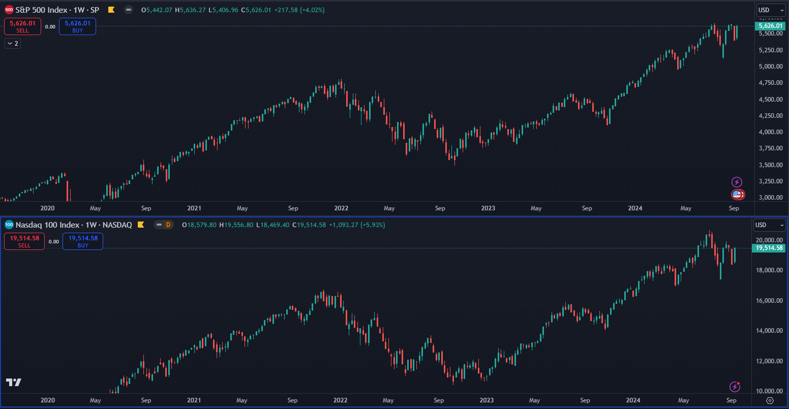 Americké akcie na základe údajov z TradingView nesignalizujú žiadnu slabosť. Nedávno sme vás informovali, že došlo k prudšiemu pohybu smerom nadol, no tento pád bol ihneď celý vymazaný. V čase písania dokonca akciové indexy S&P 500 a Nasdaq 100 opäť útočia na nové historické maximá.