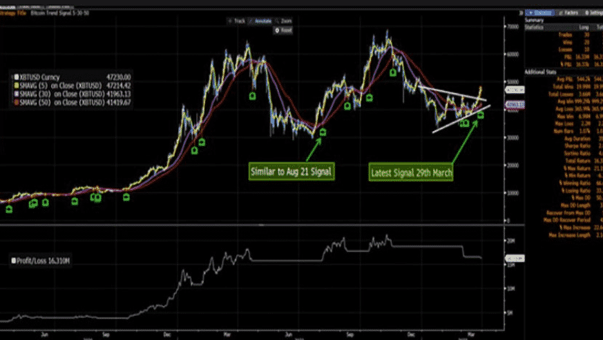 Z dlhodobého hľadiska hlavný komoditný stratég pre Bloomberg Intelligence Mike McGlone uviedol, že kryptomena signalizuje nákupný signál vo svojom trendovom signáli BI. Analytik uviedol, že je to prvýkrát od konca roku 2021, čo sa indikátor zmenil na býčí.