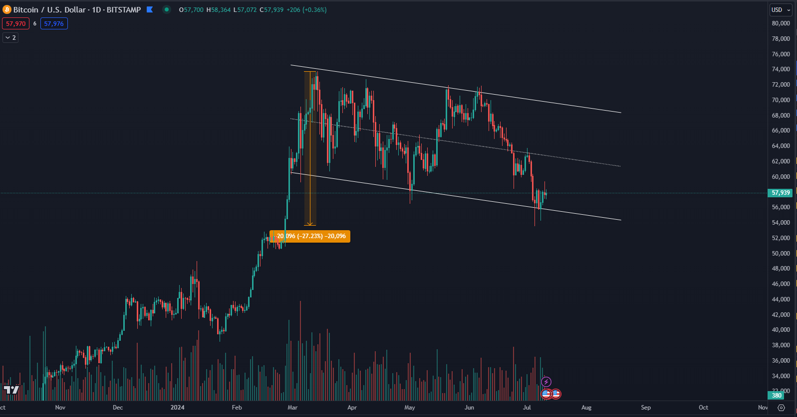 Bitcoin dosiahol historicky najvyššiu cenu v polovici marca 2024, a odvtedy sa pohybuje do strany. Za posledné mesiace sme boli svedkami dvoch korekcií počas apríla a počas júna. Naopak, v máji Bitcoin opäť útočil na nové maximum, no neúspešne. Otázkou zostáva, kedy začnú kryptomeny opäť stúpať, keďže to očakáva každý obchodník.