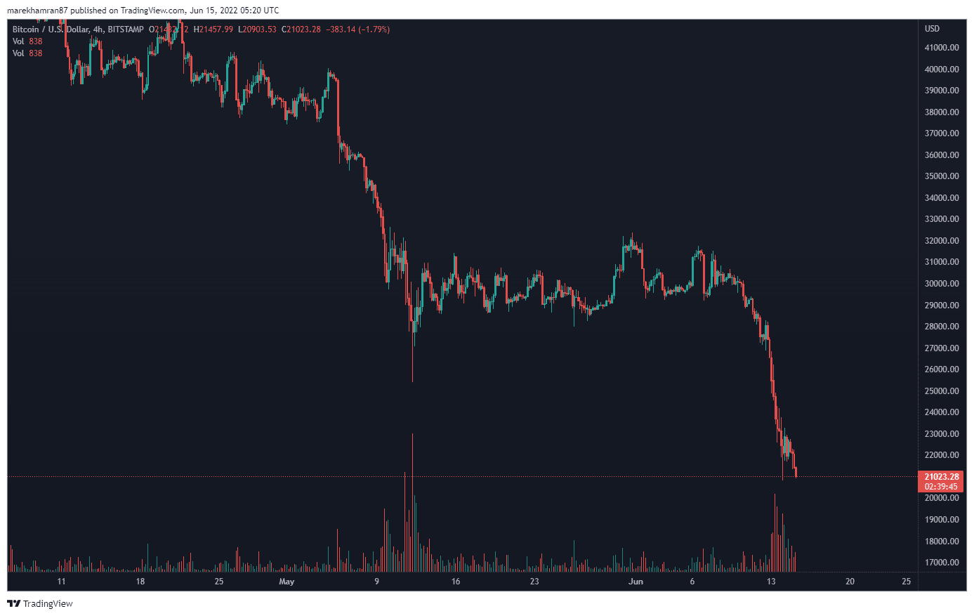 Jeho predikcia už nie je tak ďaleko. Bitcoin sa v čase písania tohto článku obchoduje na úrovni 21 023 USD.