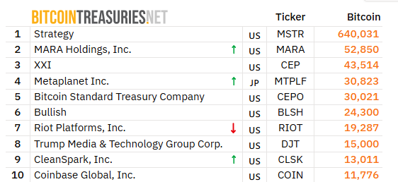 Michael Saylor je jedným z najznámejších držiteľov Bitcoinov. Jeho firma, teraz známa ako Strategy (predtým MicroStrategy), vlastní podľa verejných údajov z Bitcoin Treasuries až 640 031 BTC. Stala sa tak najväčším korporátnym držiteľom tejto kryptomeny.