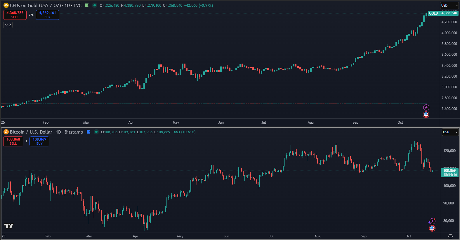 Je však potrebné dodať, že volatilita Bitcoinu zostáva výrazne vyššia. Počas napätia medzi USA a Čínou 10. októbra jeho cena klesla pod 110 000 dolárov, zatiaľ čo zlato pokračovalo v raste. Aj napriek týmto výkyvom však čoraz viac investorov považuje Bitcoin za moderný ekvivalent zlata s potenciálom, ktorý môže zmeniť finančný systém budúcnosti.