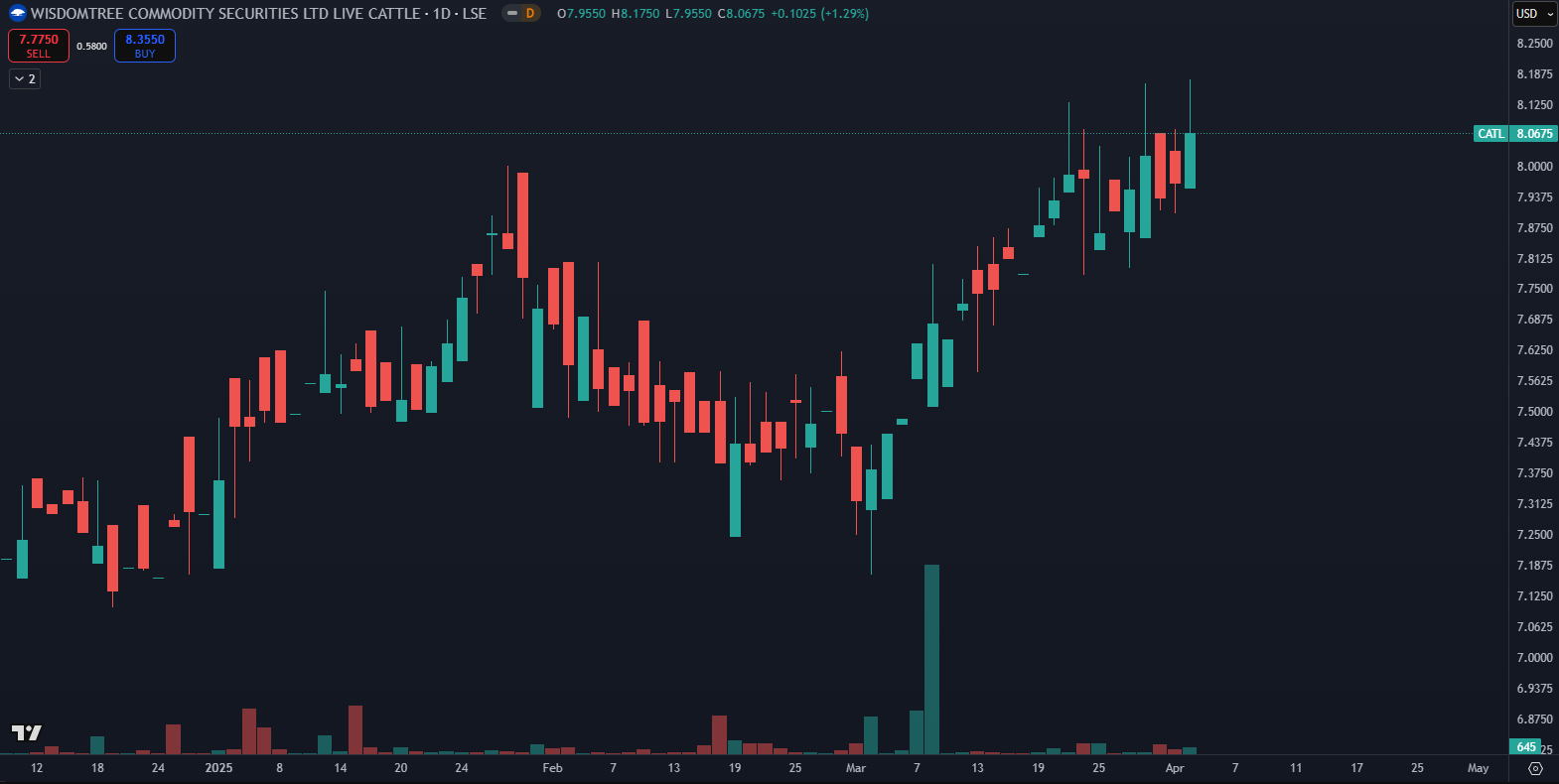 Bohužiaľ, vďaka podnikateľským operáciám, platbám nájomného, slabej likvidite určitých trhov a obrovským rozdielom medzi regiónmi je nemožné presne posúdiť posledné dve aktíva, hoci WisdomTree Live Cattle ETF (CATL) môže byť použitý ako skratka pre dobytok.