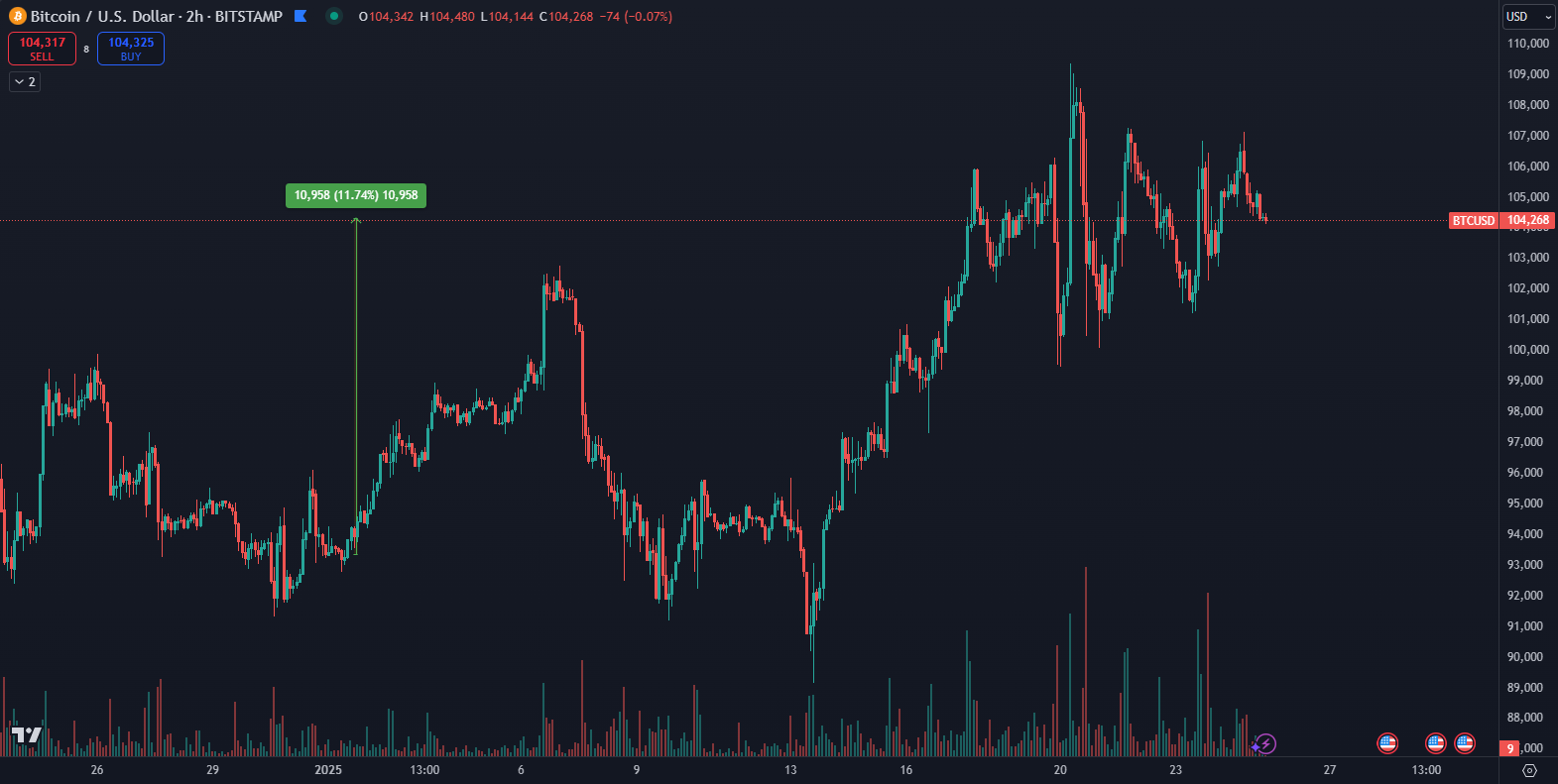 Ako uvádza finančný magazín Finbold, Bitcoin začal rok impozantným rastom. V polovici januára sa síce objavili obavy z možného prepadu až na 80 000 dolárov, no tieto sa ukázali ako neopodstatnené. Po krátkom poklese pod 90 000 dolárov nasledoval prudký rast, ktorý vyniesol Bitcoin nad hranicu 108 000 dolárov k 20. januáru, pričom v čase písania sa obchoduje na hladine 104 275 dolárov, ukazujú údaje TradingView.