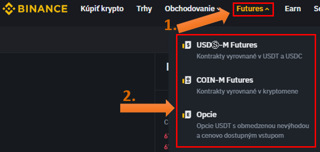 V prvom rade sa musíte zaregistrovať na burzu Binance a overiť svoj účet procesom KYC (Know Your Customer) cez importovanie osobného dokladu. Následne vložíte peniaze na burzu. Sekciu Futures nájdete v hlavnom menu.