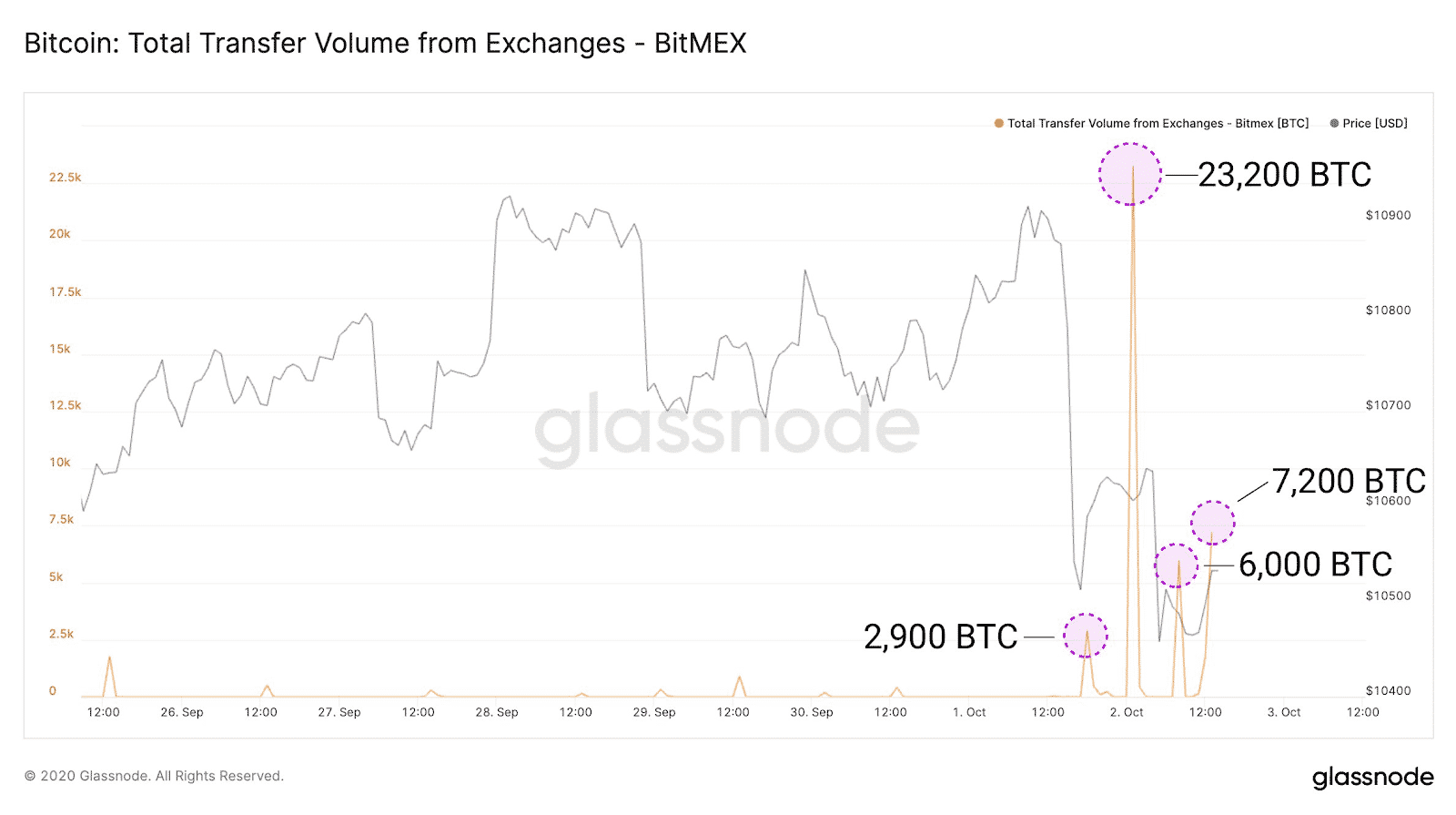 Správy o obvinení zakladateľov spoločnosti BitMEX a obvineniach vznesených proti kryptoburze registrovanej na Seychelách spôsobili, že investori na túto správu zareagovali rýchlym presunom svojich prostriedkov na iné burzy v snahe ochrániť svoje aktíva. Podľa údajov Glassnode bolo z BitMEXu odstránených takmer 40 000 BTC. V súčasných cenách to predstavuje približne 420 miliónov USD.