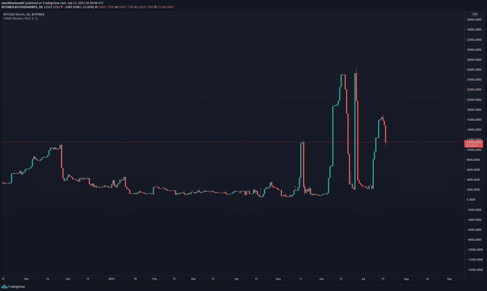 Podobné udalosti sa udiali aj v minulosti. Konkrétna situácia nastala v decembri 2020, kedy sa shortové pozície na Bitfinexe vydali medveďou cestou, čo malo za následok nárast spotových cien Bitcoinu. Predpokladá sa teda, že ďalší pokles nehrozí. Niet sa čoho obávať keďže Bitcoin disponuje veľmi silným supportom od býkov na úrovni 30 000 USD.