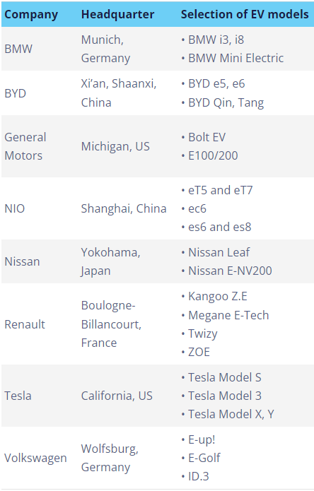 Výrobcovia elektrických áut. Zdroj: Tridentechnology