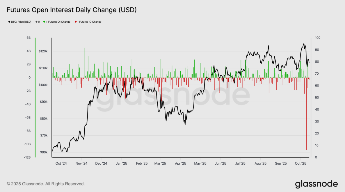 Bitcoin futures nedávno zažili jednu z najväčších jednodňových kontrakcií na trhu, keď otvorené pozície klesli o viac než 10 miliárd dolárov. Podľa Glassnode Insights