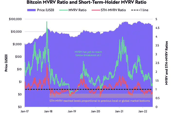 Pomer MVRV, ktorý meria trhovú hodnotu Bitcoinu v pomere k realizovanej hodnote vlajkovej kryptomeny, klesol o 35 %. Takéto úrovne boli podľa Elmandjra zaznamenané v januári 2020 a júli 2021.