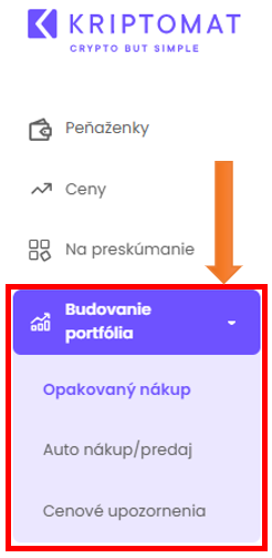 V predošlej kapitole sme si ukázali možnosti, ako nakúpiť kryptomenu na platforme Kriptomat. Detailnejší pohľad nám ponúka možnosť budovania portfólia. Na výber v tejto sekcii máte opakovaný nákup, auto nákup/predaj a cenové upozornenia.