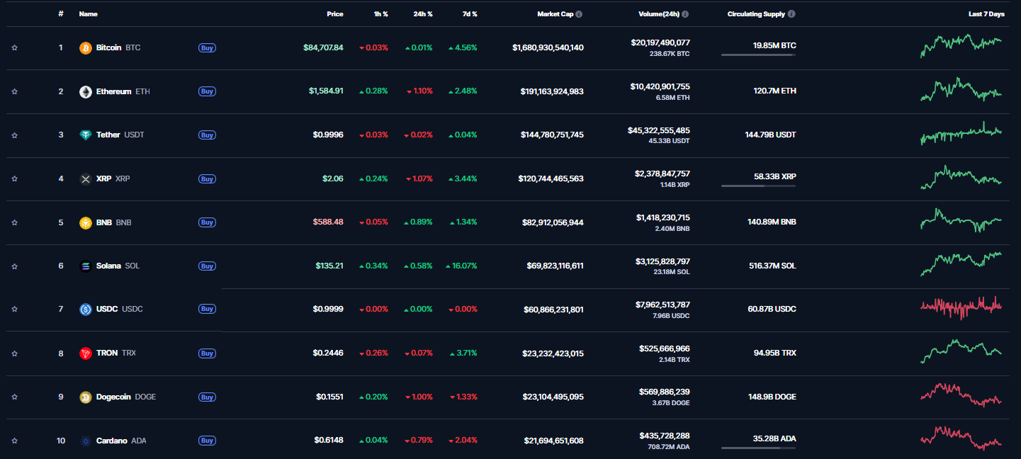 Top kryptomeny podľa CoinMarketCap. Zdroj: coinmarketcap.com