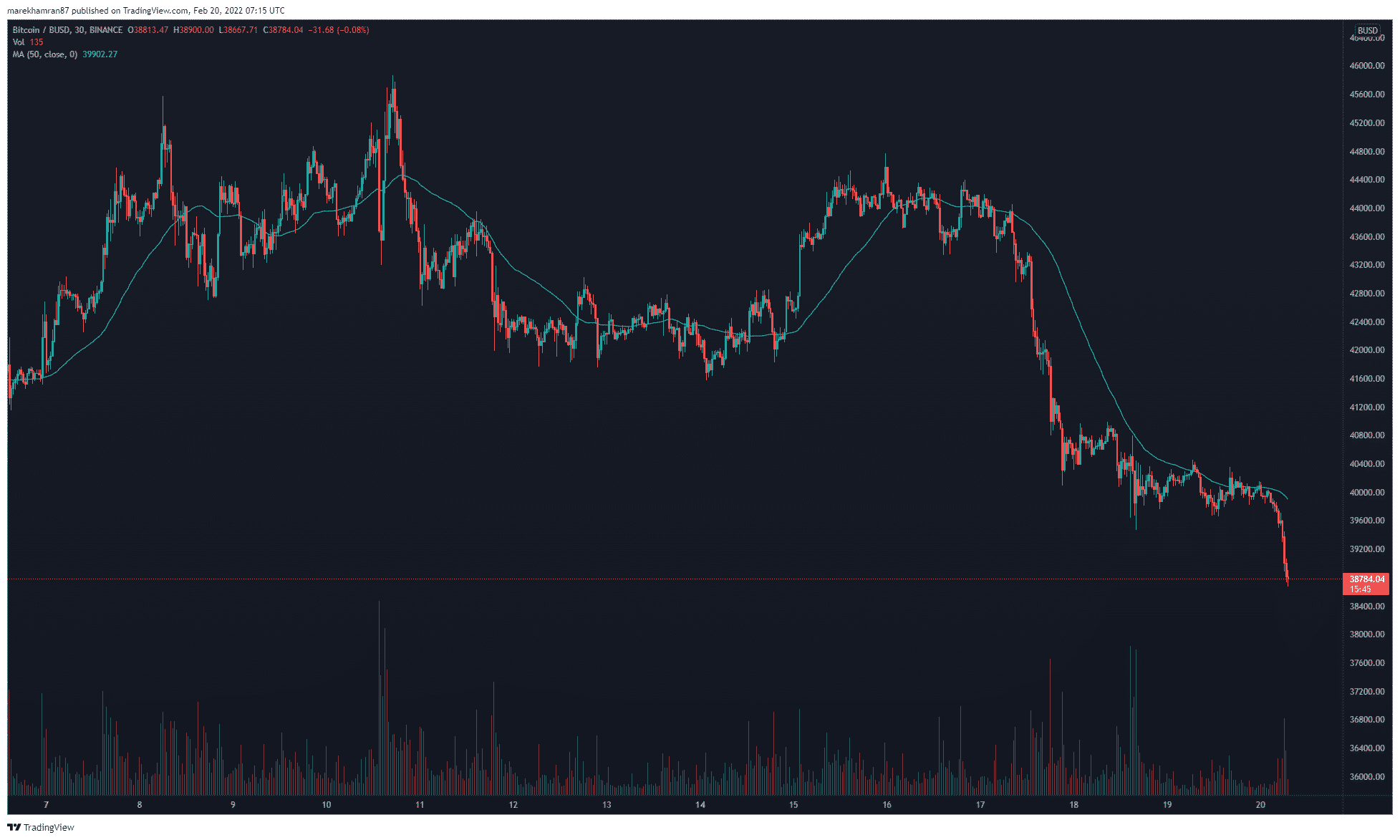 Medvede sa vrátili na scénu a plne zaútočili na BTC, ktorý sa v čase písania tohto článku obchodoval za cenu približne 38 870 USD. Prvýkrát od začiatku februára sa tak najväčšia kryptomena prepadla pod úroveň 39 500 USD. Jej trhová kapitalizácia je aktuálne na úrovni 736 miliárd USD.