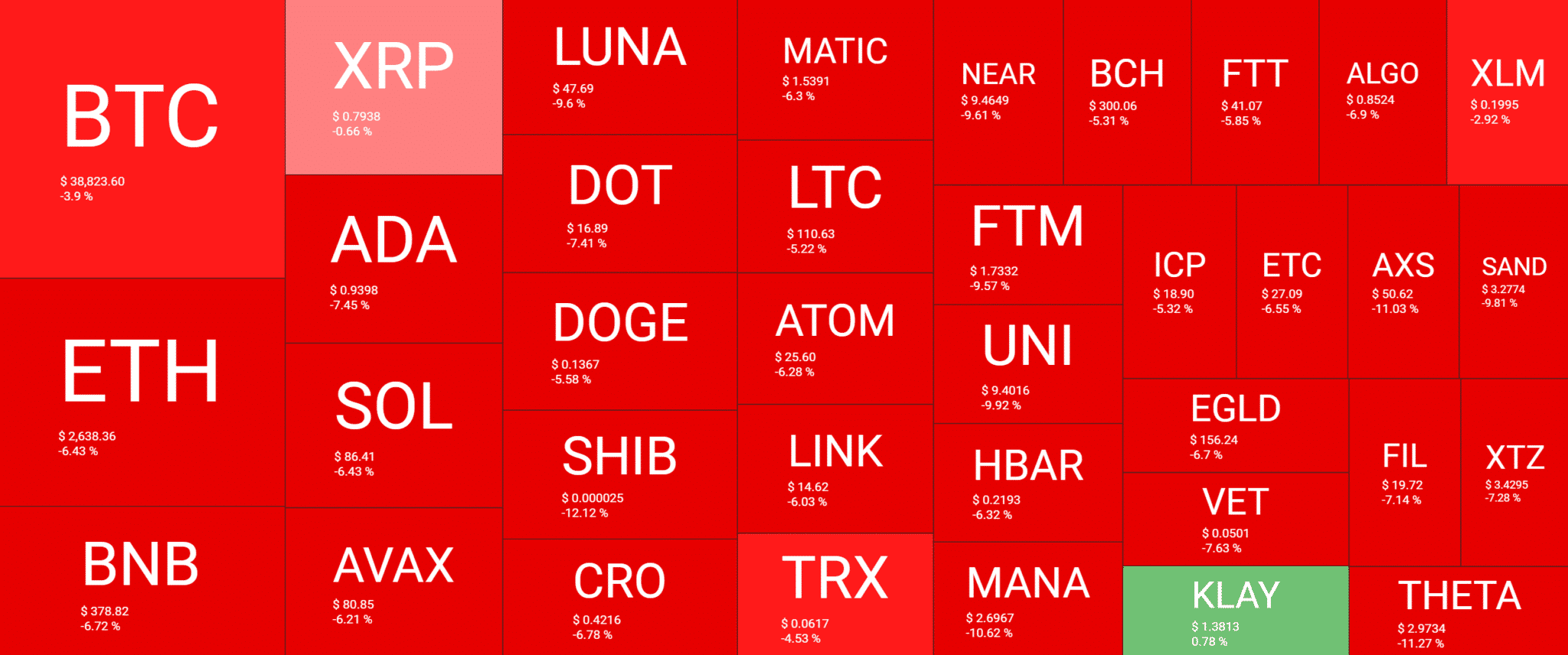 Nie je žiadnym prekvapením, že väčšina trhu aktuálne kopíruje vývoj BTC. Takže sme aj v prípade altcoinov hlboko v červených číslach. Kráľom medzi altcoinmi je Ethereum, ktoré sa v čase písania tohto článku pohybuje na úrovni 2 638 USD.