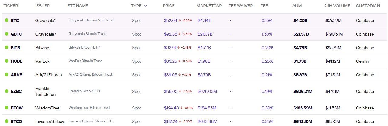 Najväčšie bitcoinové ETF. Zdroj: blockworks.co