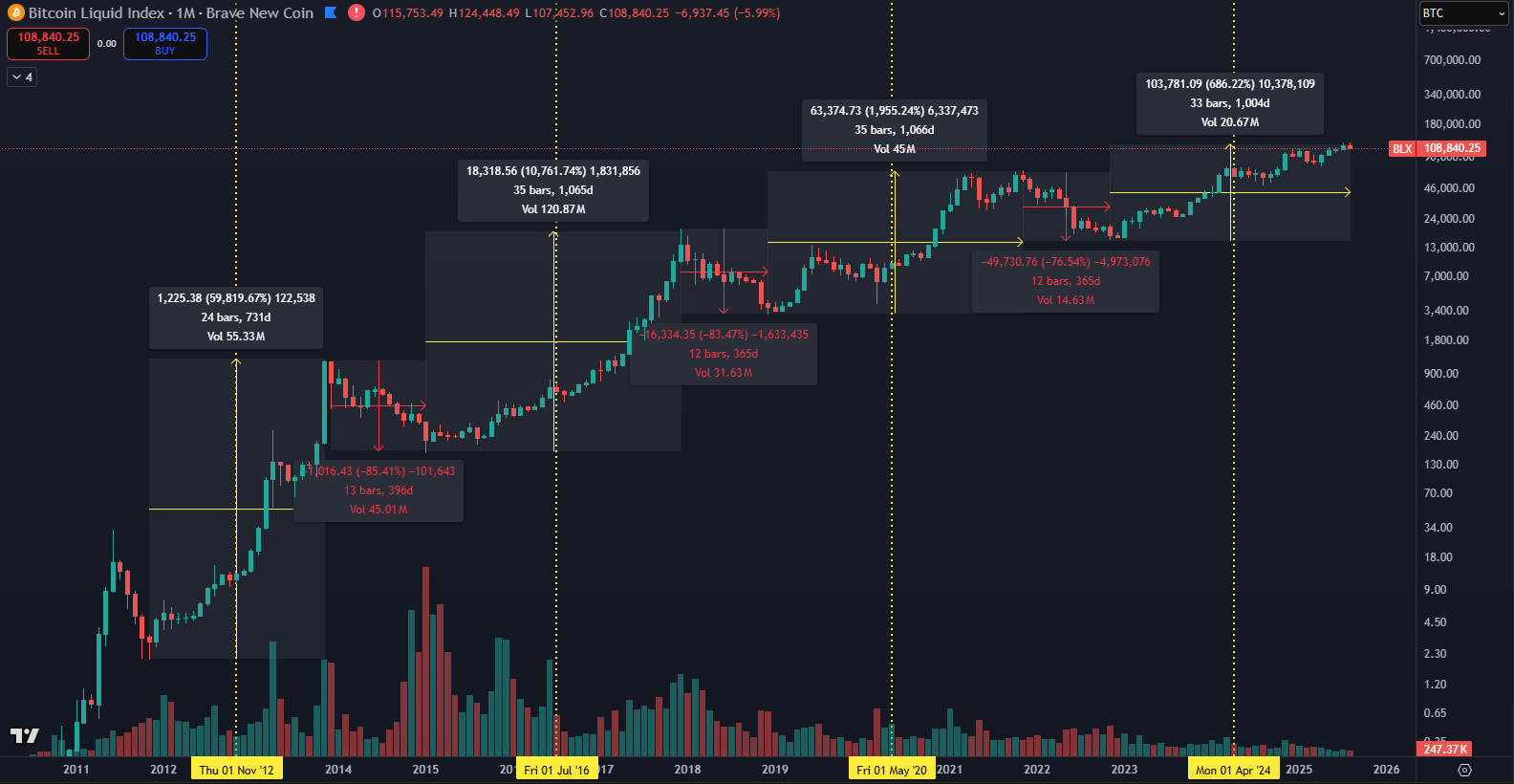 Mnohých začiatočníkov fascinuje možnosť zhodnotenia o 50 až 90 %, no často si neuvedomujú, že rovnakú časť hodnoty môžu rovnako rýchlo stratiť. Údaje z TradingView ukazujú, že Bitcoin zažil v histórii hneď niekoľko korekcií prevyšujúcich 80 %. Preto je dôležité pochopiť, čo túto volatilitu spôsobuje, ako funguje trhová dynamika a akým spôsobom môže investor zmierniť riziko.