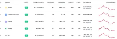 Podľa údajov CoinMarketCap Binance dosahuje v čase písania článku 14,28 miliardy dolárov denný objem obchodovania, zatiaľ čo Coinbase 1,65 miliardy dolárov.