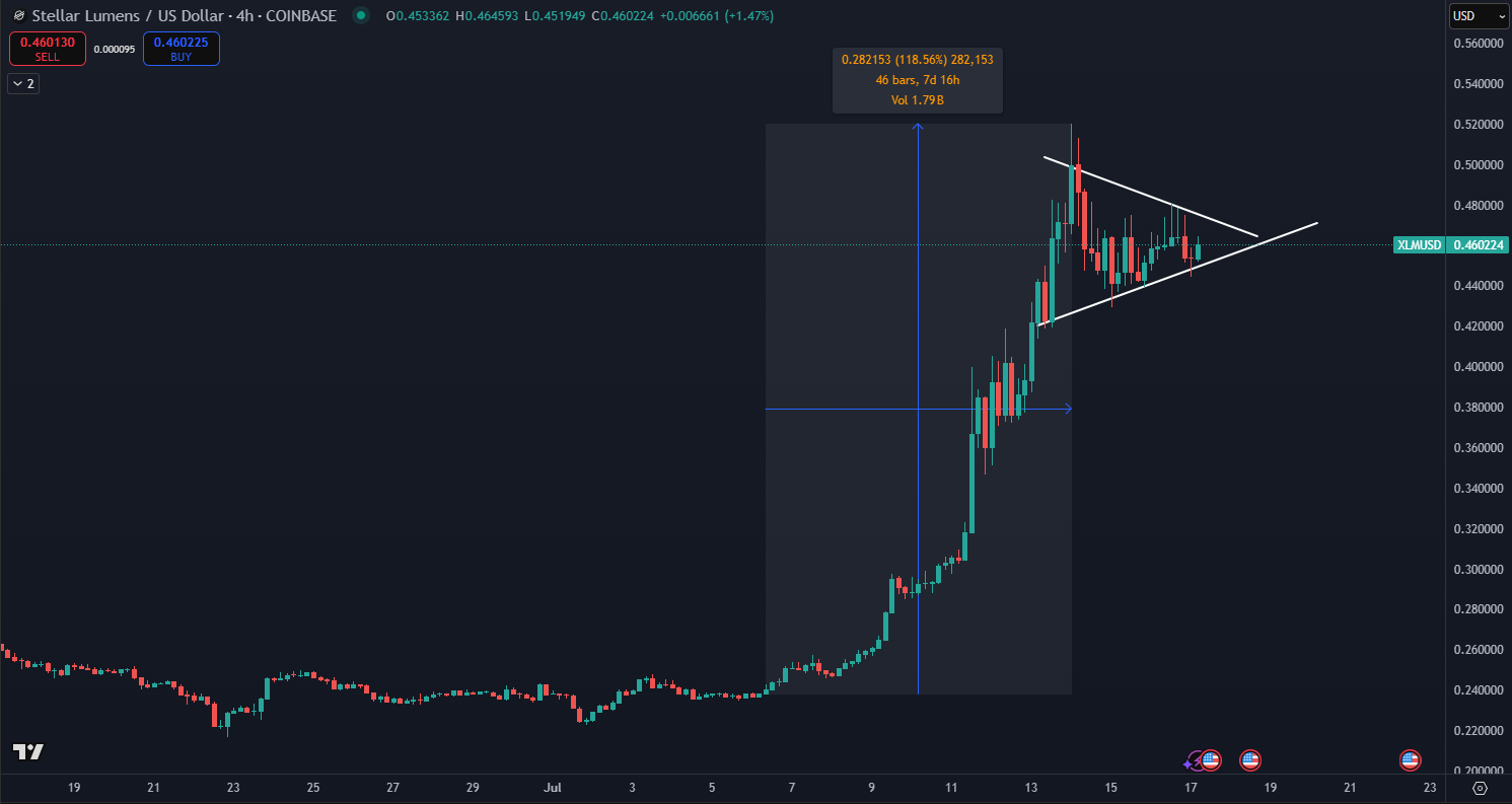 Kryptomena Stellar (XLM) prekvapivo vystrelila nahor, keď za jediný týždeň posilnila o viac ako 120 %, čím prelomila mesačné cenové rozpätie a vzbudila záujem naprieč celým altcoinovým trhom. Na základe údajov TradingView, XLM vyskočil z hladiny okolo 0,23 dolára až na 0,52 dolára, čo je najvyššia cena od roku 2024.